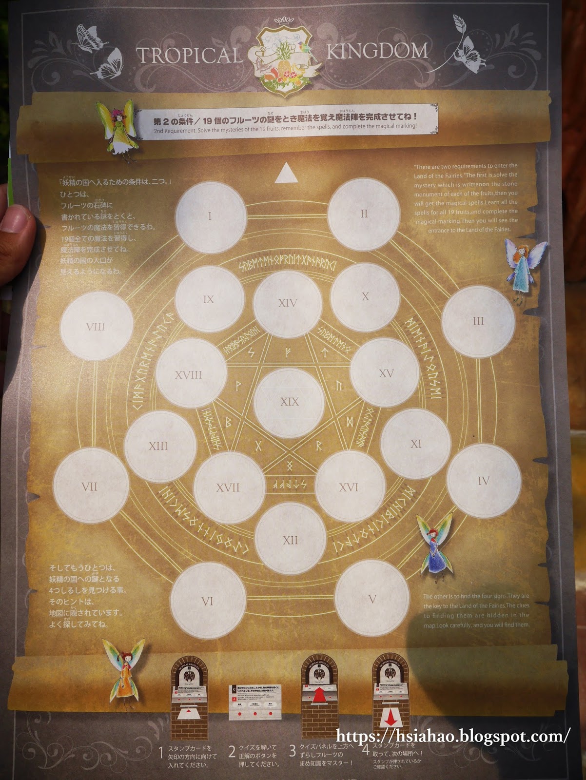 (園內有各式各樣的主題性遊戲能玩,在入口購票後,服務人員會給遊客一張遊戲的「闖關圖」,必須在指定地點內完成各式問題或遊戲等,雖然目前僅支援日文及英文,但有許多漢字,我相信大人小孩都能很快融入這個故事主題內)