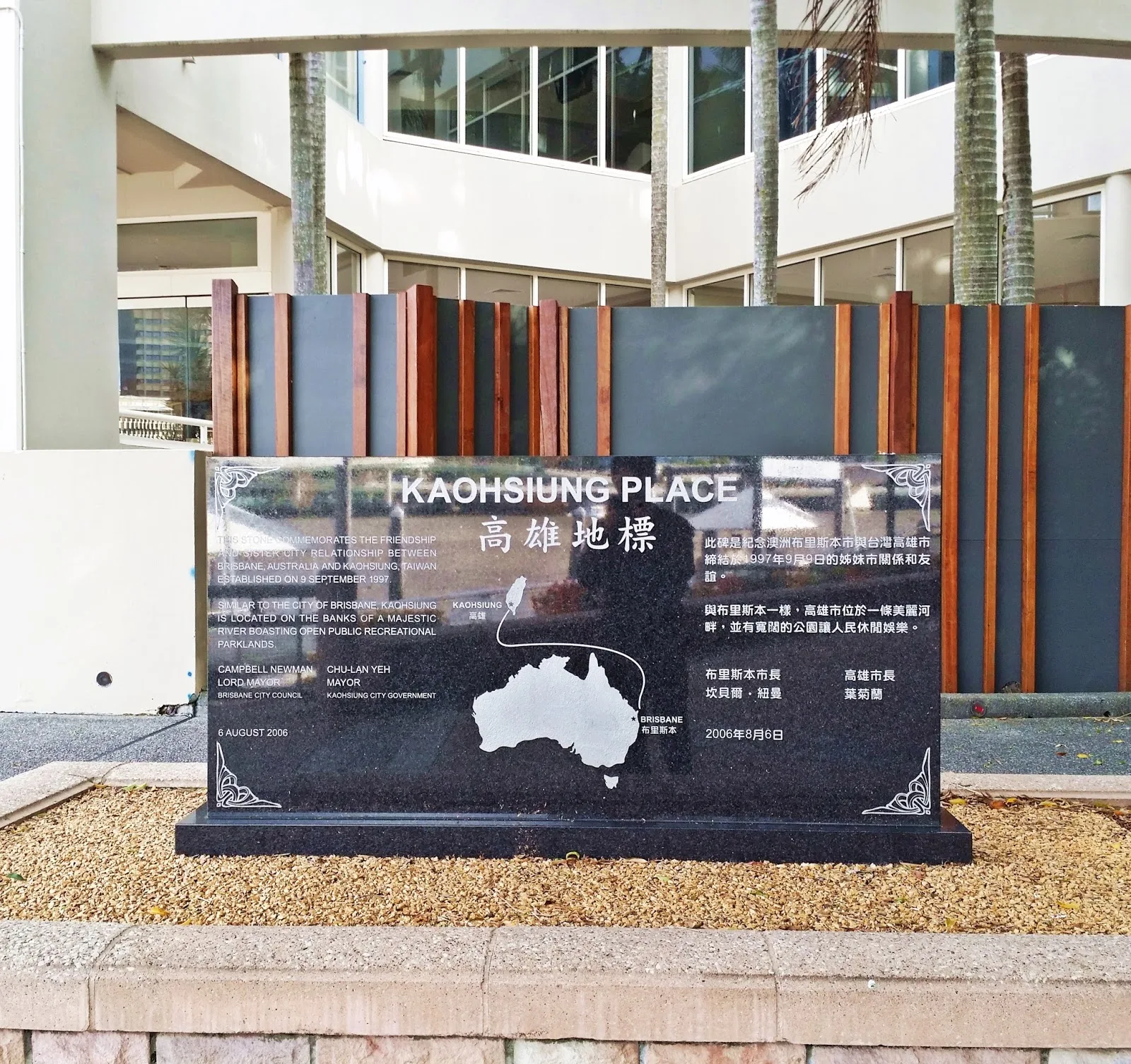 (你知道嗎?高雄可是布里斯本的姊妹市!因此在南岸公園內還能看到與高雄締結友好關係的紀念碑,在異鄉看到正體中文還是很親切啊!)