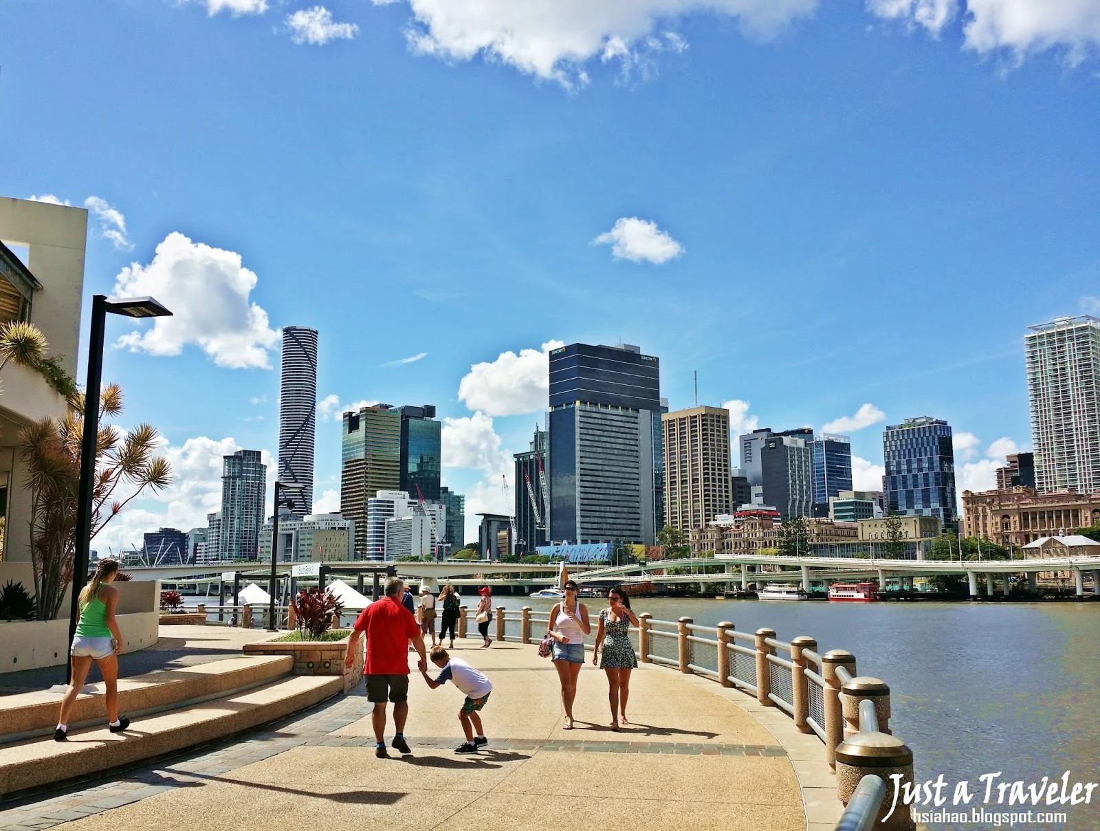 (沿著河岸旁有條人行與自行車道,平日就有許多人會在此散步、騎腳踏車等等,除了風景與環境都很舒服外,還能看到許多渡輪的乘船站,搭乘渡輪就能前往「昆士蘭大學」、「Eat Street Markets」等景點,也能體驗如「MV Mirimar遊船」享受河岸風景)