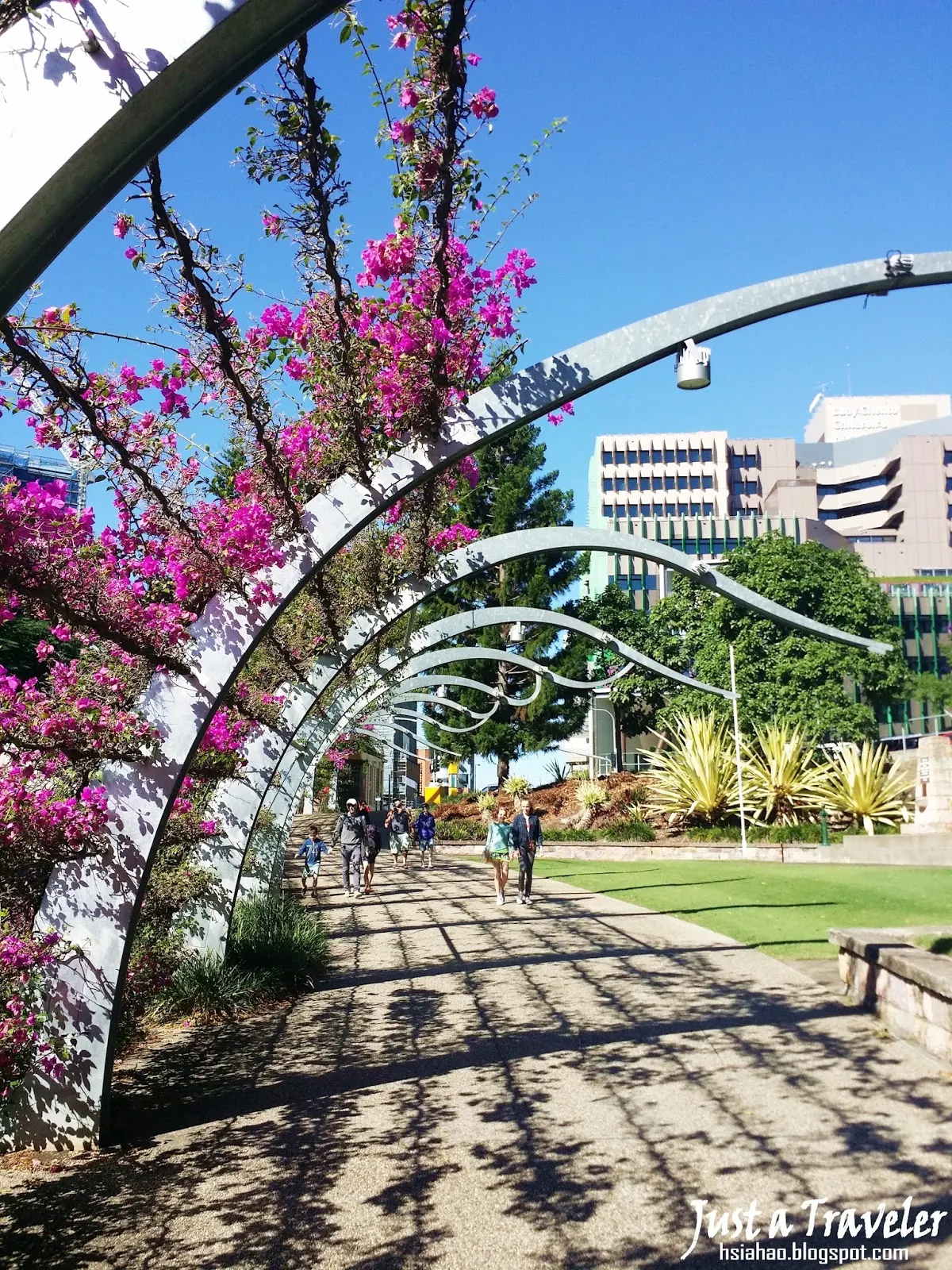 (園內另一特色就是「花藤人行道」,貫穿整個南岸公園,不僅美麗,來到此處也可以不用擔心炎熱和防曬問題,畢竟布里斯本可是澳洲著名且炎熱的陽光之城啊!)