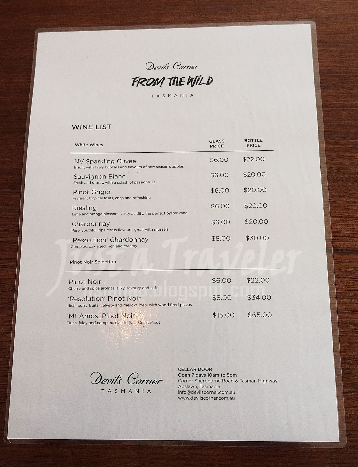 (Devil's Corner Cellar Door的產品MENU)
