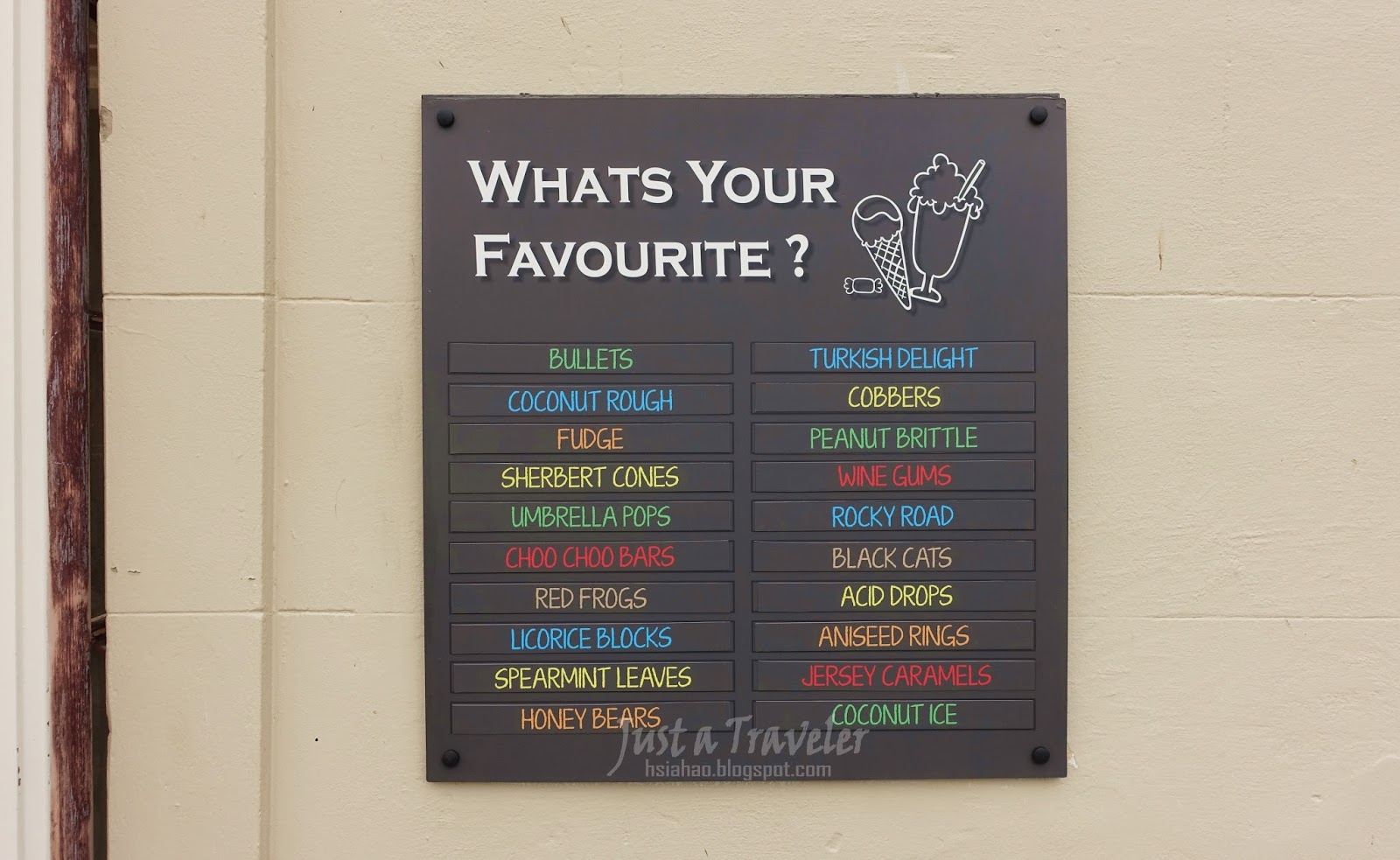 (在里奇蒙(Richmond)小鎮上,還有個知名的甜品店「Sweets and Treats」,專門販售甜點、糖果、冰淇淋、巧克力等等,價格區間大約3-7澳幣,可參考圖片內的標記,另外店內外也有能夠用餐的地方,環境很棒!)