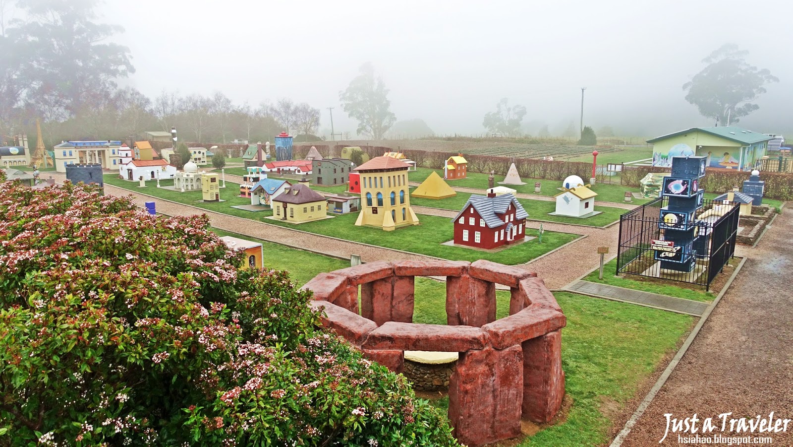 (我們到訪的時候其實天氣不是很好,霧非常大,但是還是能看得出來,這裡是非常有童趣的地方,以小人國為主題,到處都是很適合拍照的可愛元素!)