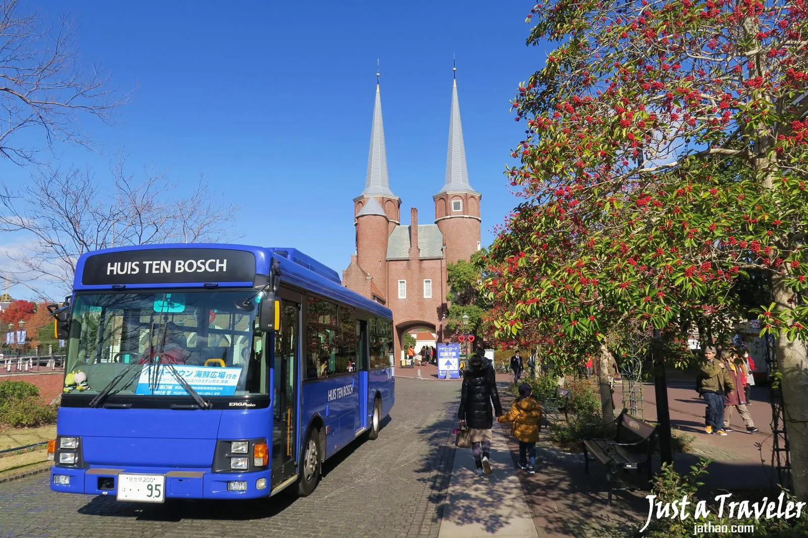 (凡是白天進場的遊客,都能免費使用園內巴士,約20分鐘一班,整個豪斯登堡真的很大,園內巴士是很貼心的設計)