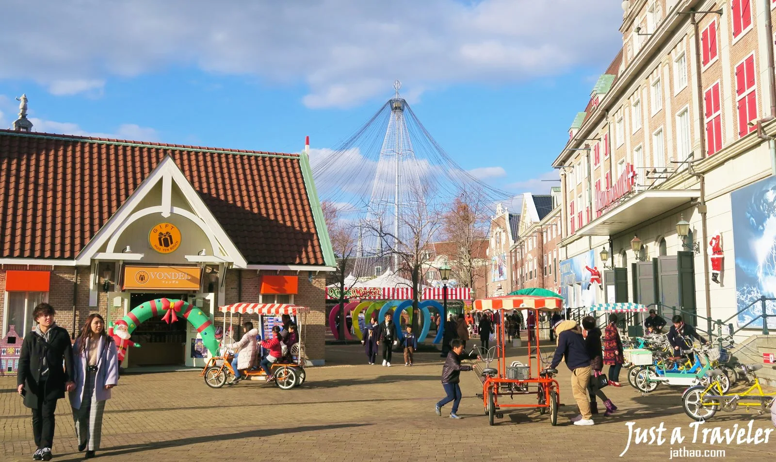 (我是在聖誕節到訪豪斯登堡的,因此到處都布置得很有聖誕味,售票處其實不多,如果在旺季可能要跟日本其他遊樂園一樣,花很多時間在購票上,因此才推薦可以透過網路購買,省時以外還常有優惠價,當場使用入場憑證即可)