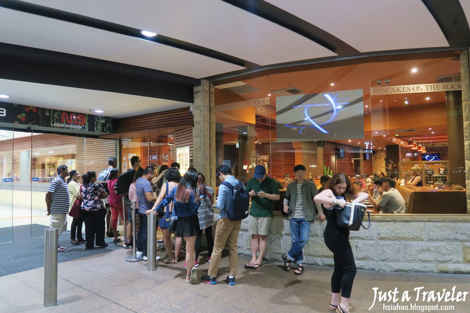 (這就是購物中心外的著名餐廳「Pancakes On The Rocks」,許多遊客會到此品嘗他們的「鬆餅」,也經常大排長龍)