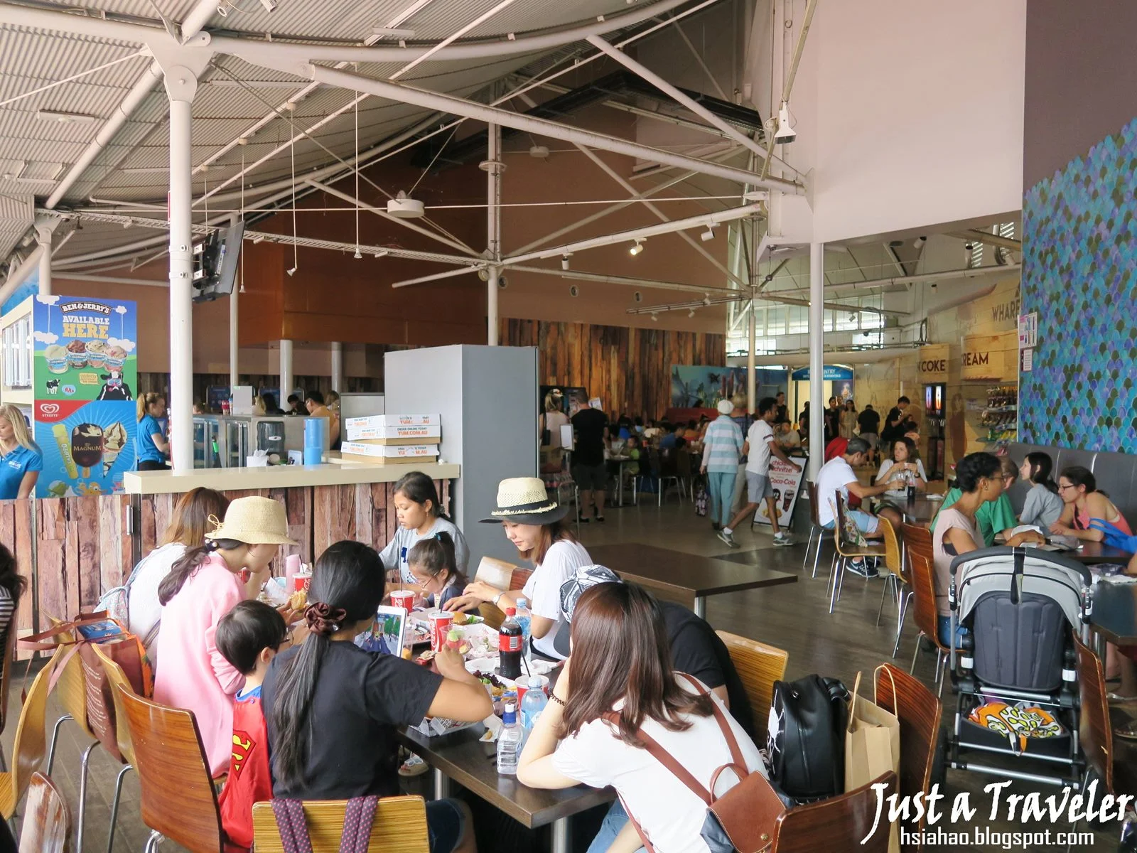 (水族館外有許多餐廳,在遊玩之餘也很方便用餐)