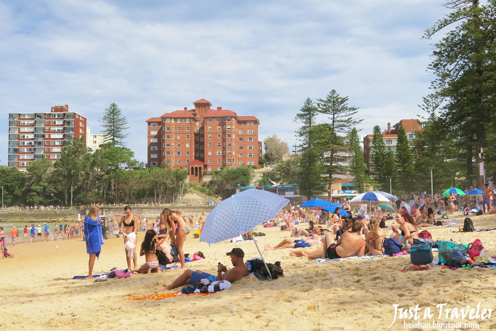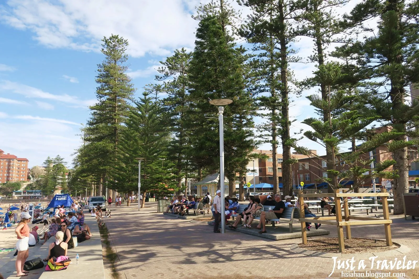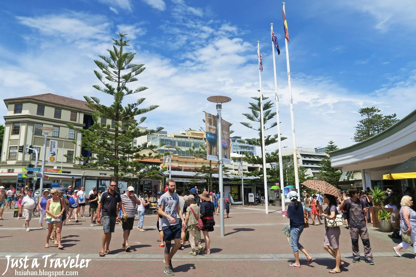 (其實澳洲大多「海灘上」都是沒有商家的,像是「黃金海岸」、「邦代海灘(Bondi Beach)」等等,而曼利海灘則有租借海灘用品、玩水設備的店舖,雖然有些人不喜歡這種商業化,但對於觀光客來說確實很方便)