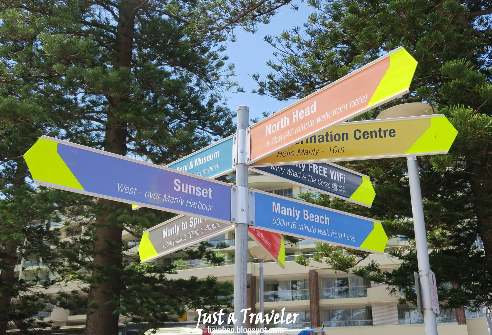 (曼利港門口就有清楚的指標,一般來說遊客都會直線經過中心商店街、並往曼利海灘走,也是此區最推薦的路線玩法)